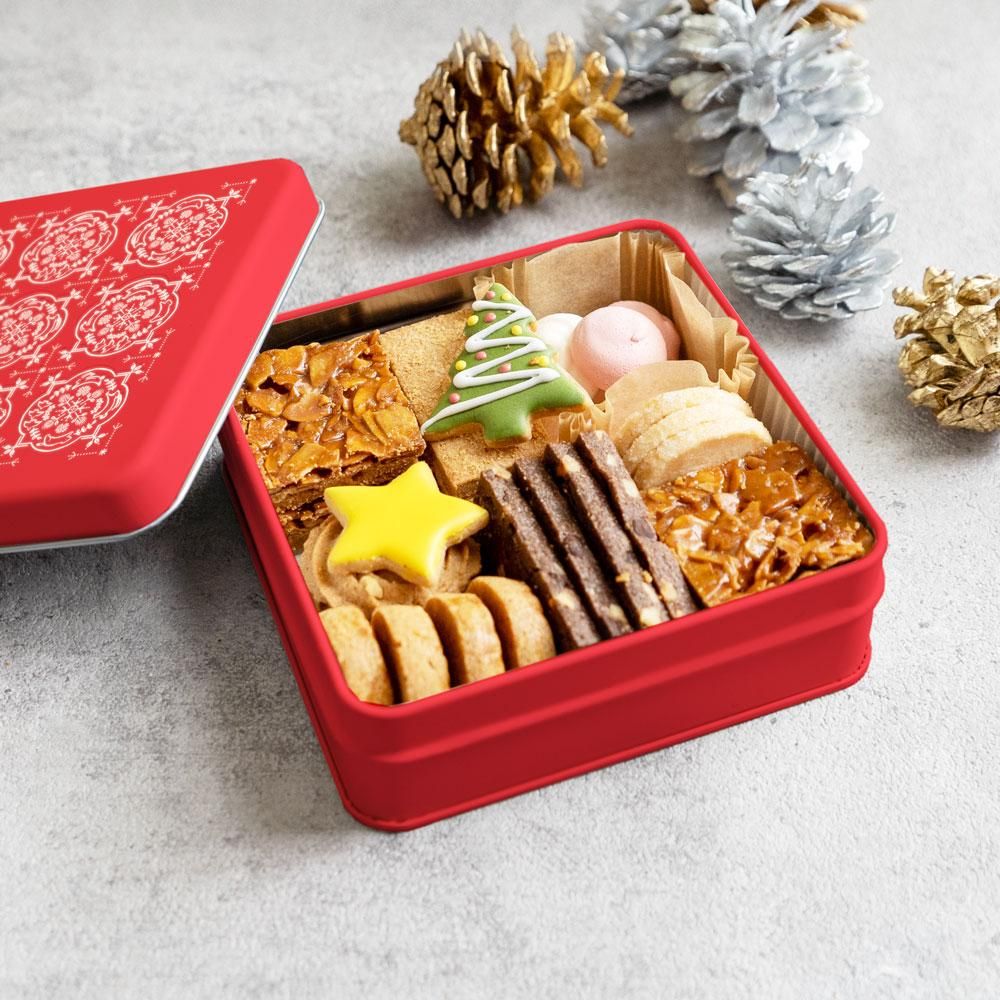 | 内容 | ツリークッキー1個/スタークッキー1個/ギャレットブルトンヌ4個/リンツァートルテ2個/フロランタン4個/ヘーゼルナッツチョコクッキー4個/カマンベールチーズクッキー3個/ブリュッセラー3個/フランボワーズのメレンゲ3個/レモンのメレンゲ3個 |