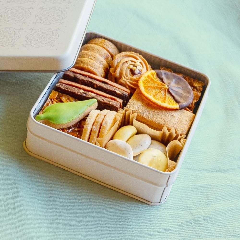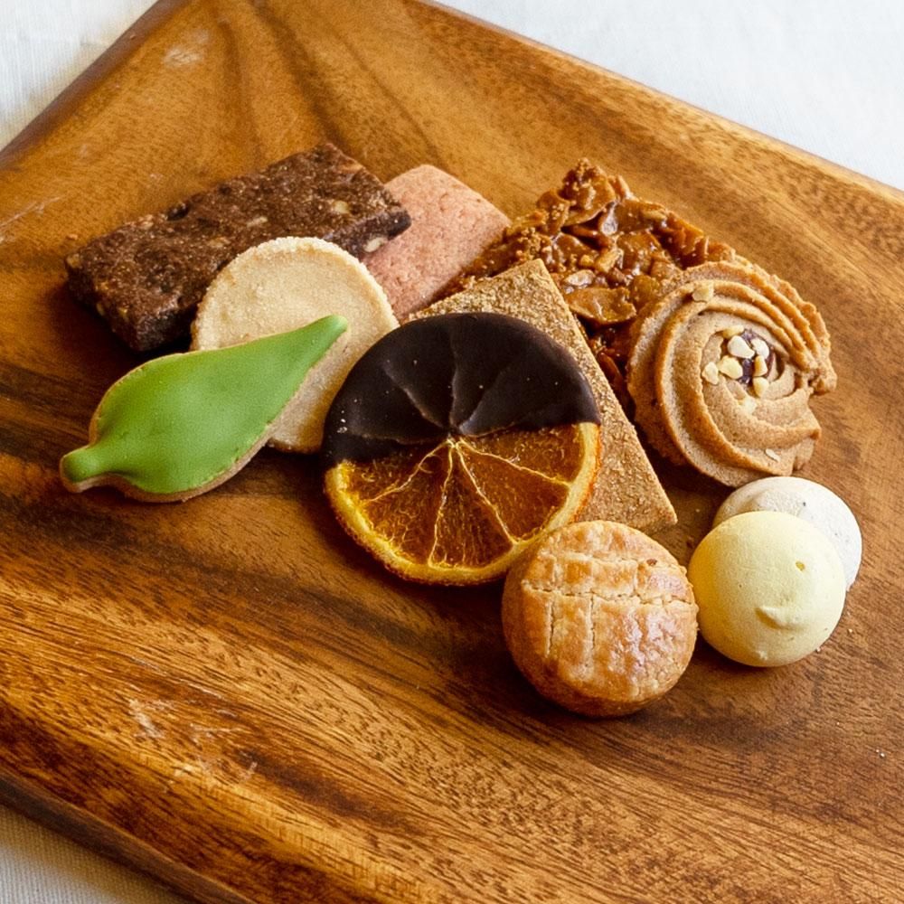 | 内容 | ギャレットブルトンヌ4個/リンツァートルテ3個/フロランタン4個/フランボワーズクッキー2個/ヘーゼルナッツチョコクッキー2個/カマンベールチーズクッキー4個/ブリュッセラー3個/アールグレイのメレンゲ3個/レモンのメレンゲ3個/オランジェット1個/リーフクッキー1個 |